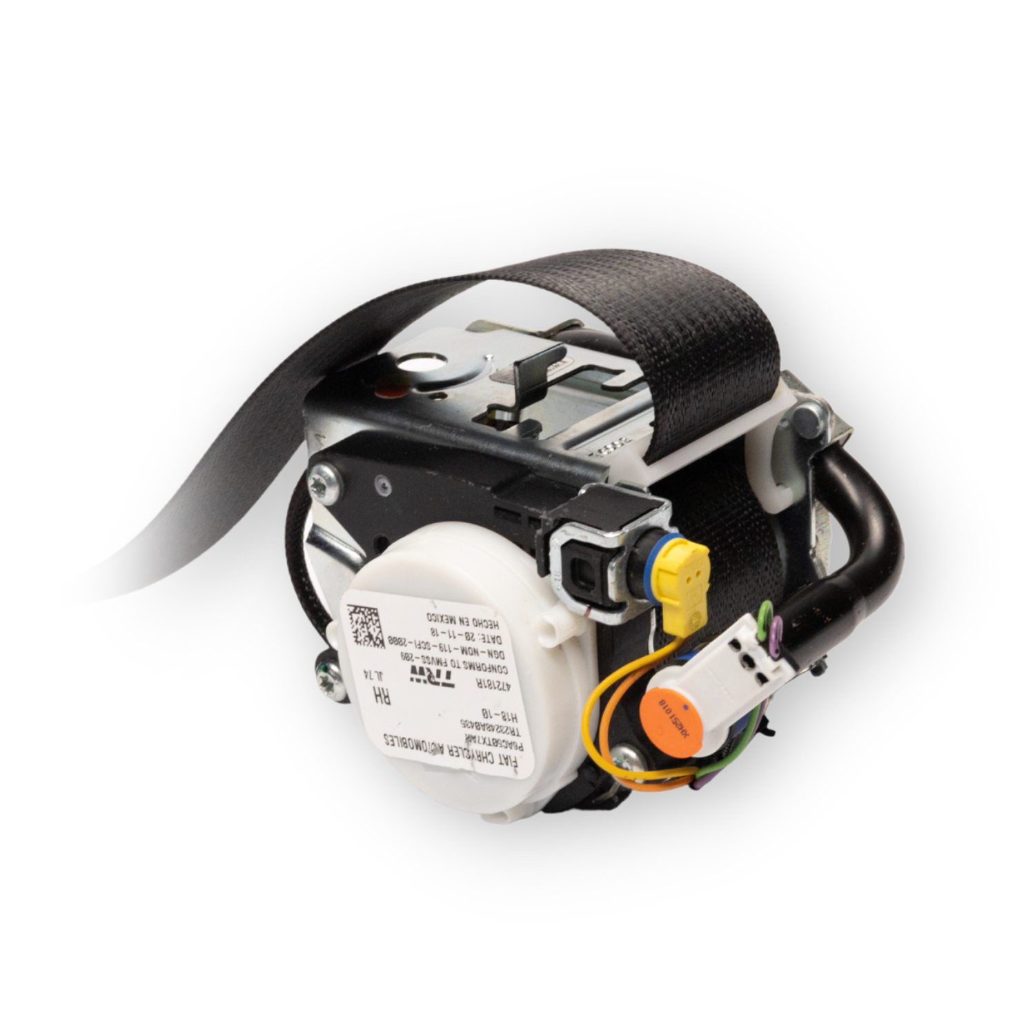 This seat belt type was introduced into the automotive industry around 2008, but did not become more common on vehicles until 2010. In most cases, you will find one plug located on the retractor reel, and the other plug will be located on an anchor pre-tensioner, found at the end of the seat belt webbing. The anchor pre-tensioner will usually be bolted down in the pillar of the car or to the outer seat frame.