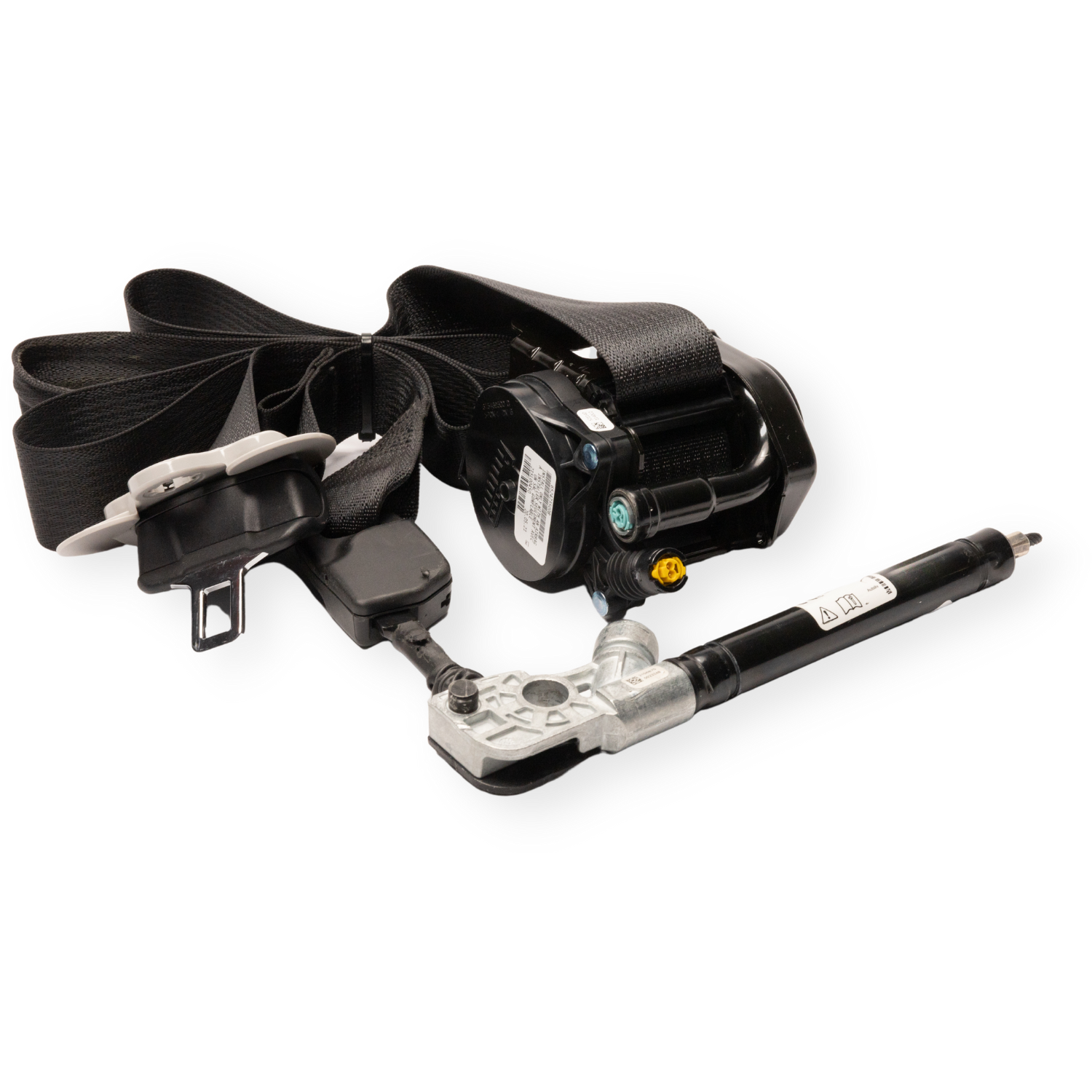 This seat belt type is more common on higher end vehicles manufactured from 2010 and up. Look for two plugs on the retractor reel and one plug on the anchor pretensioner. The triple stage seat belt is not as commonly found as a single stage or dual stage unit, but is gaining popularity with many automotive manufacturers such as Volkswagen, Audi, Subaru, and Ford.